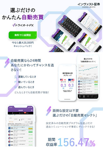 インヴァスト証券の「トライオートFX」です。